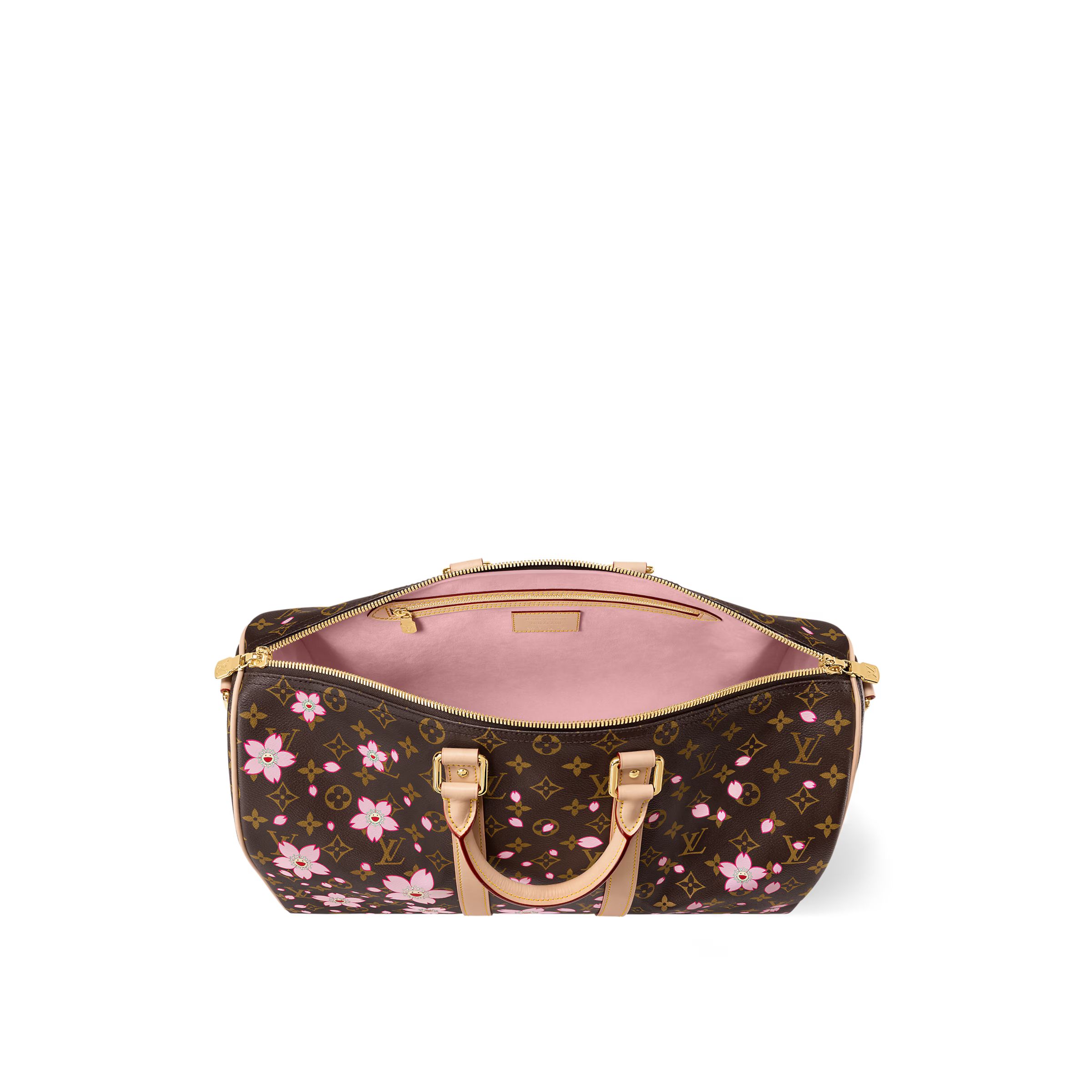 メゾンの真のアイコンをプレイフルに再解釈した「LV × TM キーポル・バンドリエール 45」。祝福ムードに溢れた「ルイ・ヴィトン × 村上隆」リエディション・コレクションならではのいきいきとしたチェリーブロッサム・モチーフで、定番のモノグラム・キャンバスにひねりを加えました。パドロック(錠前)付きのリボン形キーベルと、日本人アーティスト 村上隆を象徴するお花のチャーム付き。